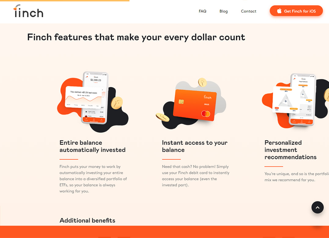 Finch is a mobile app that combines the flexibility of a checking account with the benefits of an investment account. It puts your money to work by automatically investing one’s entire checking balance into a diversified portfolio of Exchange Traded Funds, offering liquidity, simplicity, and the opportunity to increase wealth by up to 50% every 10 years.