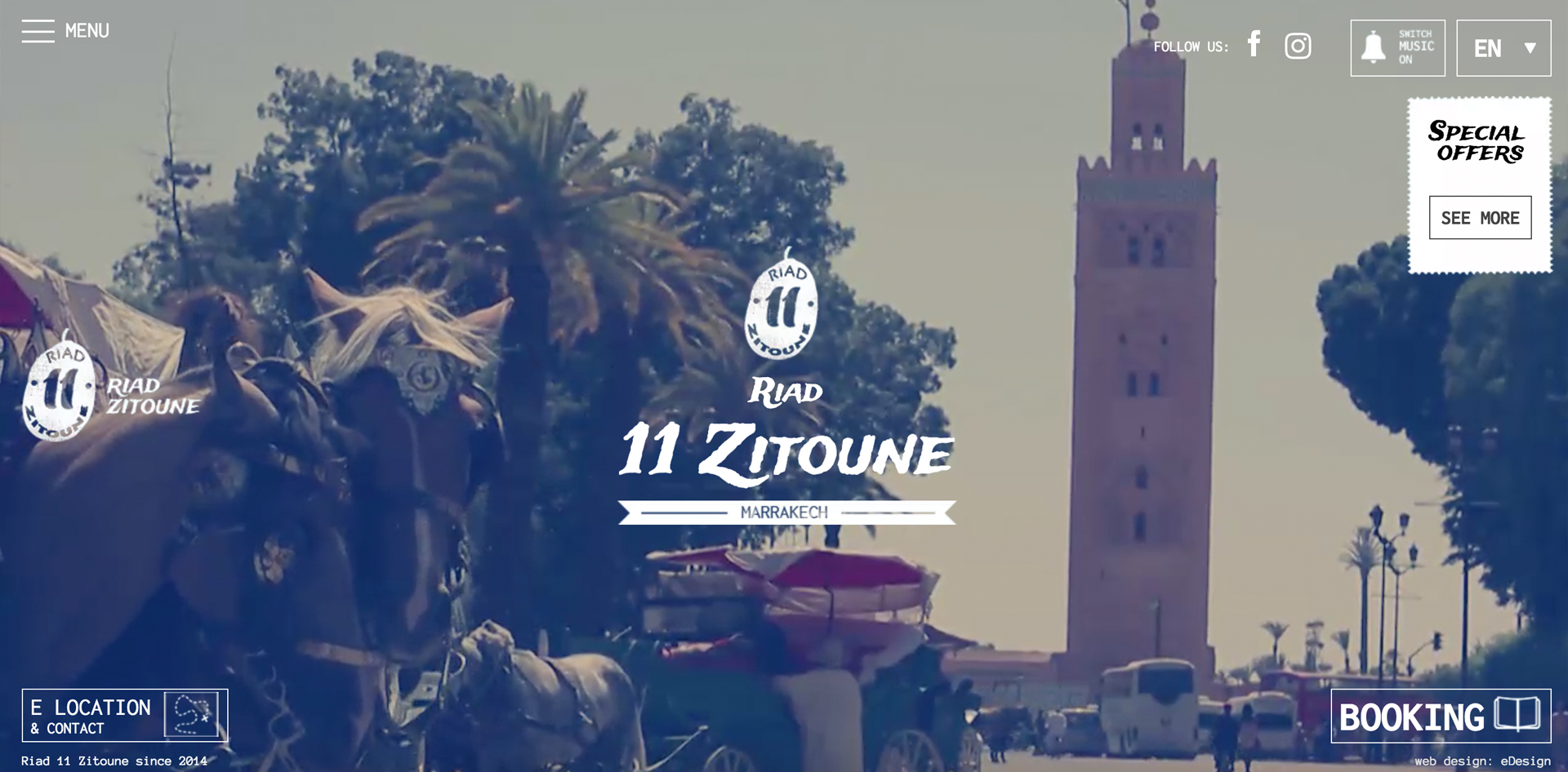 Beautifully crafted video scenes let viewers experience Zitoune’s adjacent streets, vibrant soul, the chaos of colors and flavors. You can almost taste the exotic aromas that hang in the air. We also added music to the mix for a full emersion experience. An interactive view of the rooms shows their unique charm, designed in the old days of Morocco. By using video and sound, we stimulate the imagination and lead travelers into the old Marrakesh of 1,001 Nights.