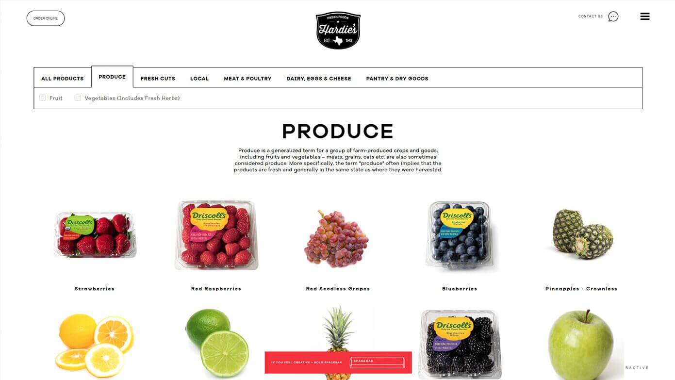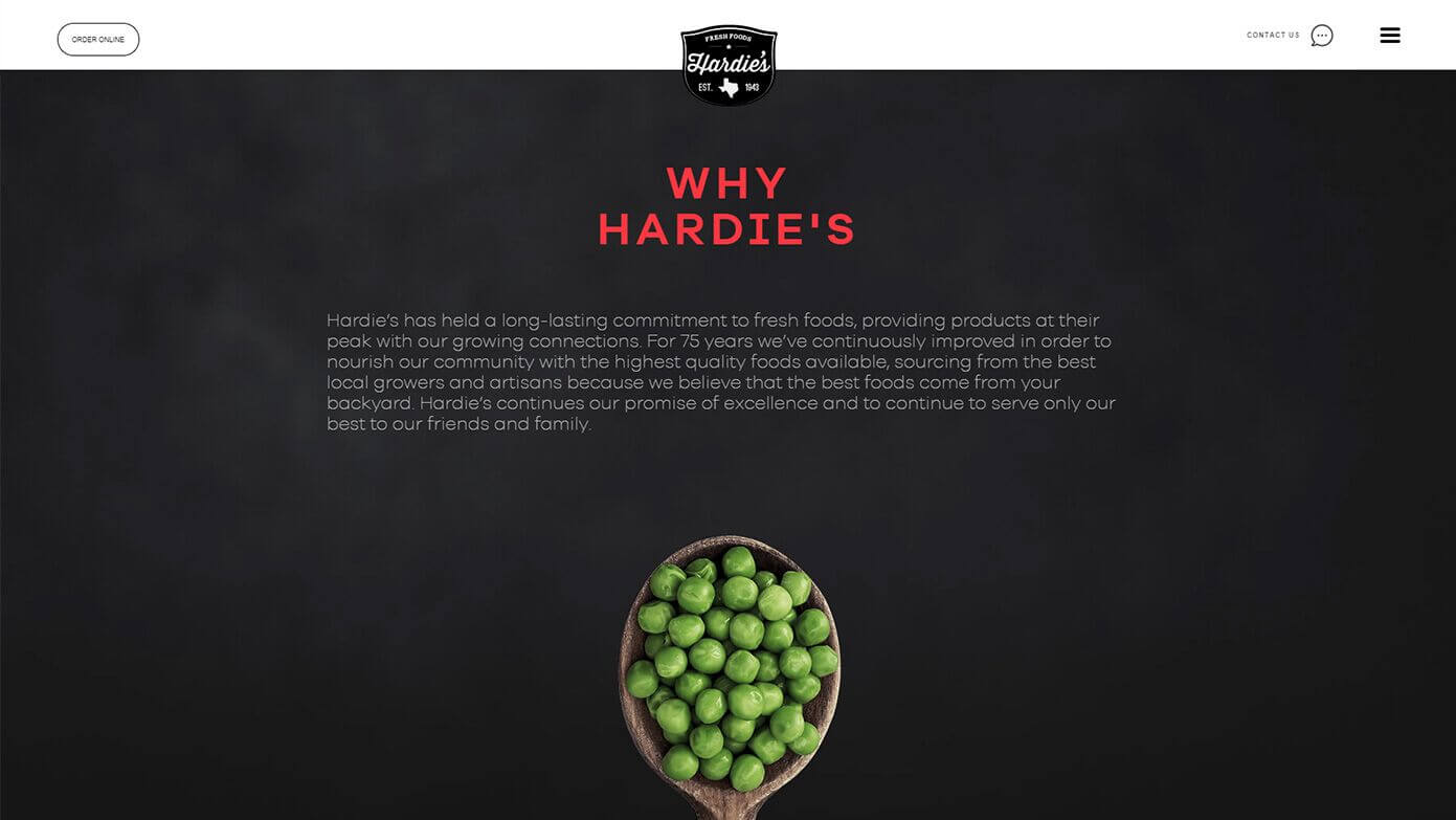 Our team designed the Hardie’s website to serve two main functions. Part of the site houses corporate identity, history, values, and work ethics, while the rest of the site highlights the brand’s product catalog and features its impressive array of in-season produce.