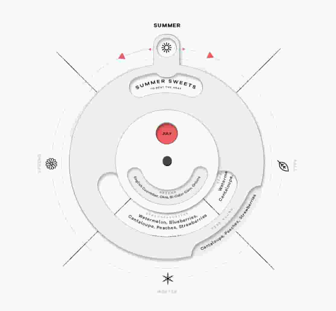 To add an interactive cool factor to the Hardie’s site, we created a dynamic wheel showcasing all the fresh fruits and veggies currently in season.